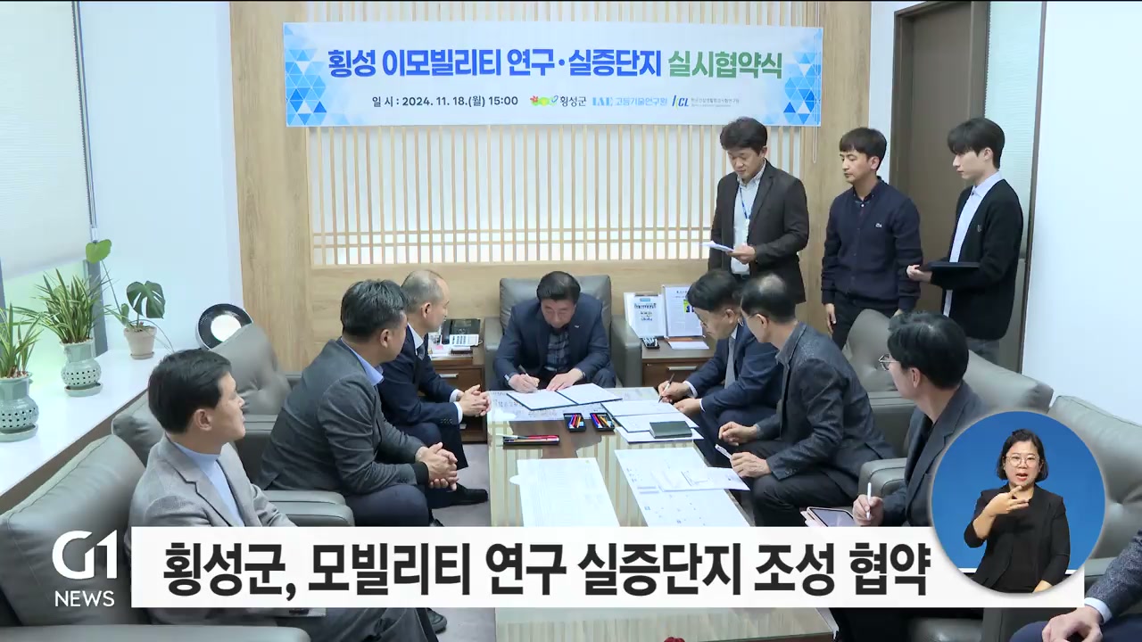 횡성군이 고등기술연구원, 한국건설생활환경시험연구원과 함께 모빌리티 연구 실증단지 조성을 위한 실시협약을 맺었습니다.