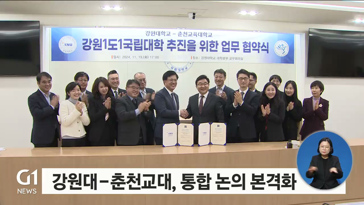두 대학은 어제(19일) 강원대학교에서 '강원 1도 1국립대학' 추진을 위한 업무협약을 맺고, 교원 양성 체계 구축과 지역 동반 성장에 힘을 모으기로 했습니다.