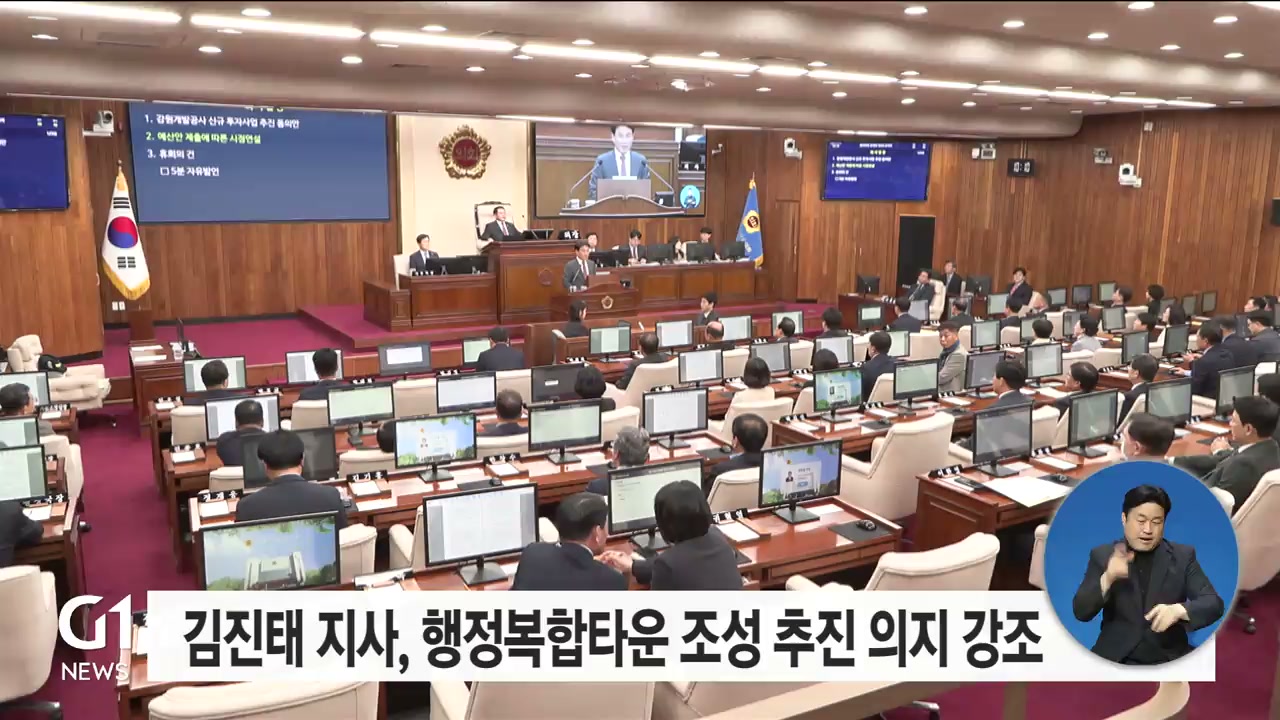 김진태 강원자치도지사는 어제(20일) 도의회 2025년 예산안 제출에 따른 시정연설에서, 춘천 고은리 행정복합타운 조성 사업 재검토 우려에 강한 추진 의지를 밝혔습니다.
