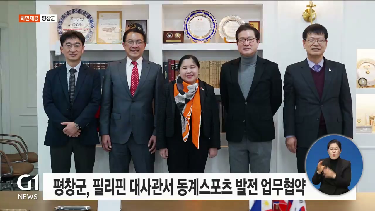 평창군은 어제(27일) 주한 필리핀 대사관에서 동계스포츠의 지속 발전을 위한 업무협약을 체결했습니다.