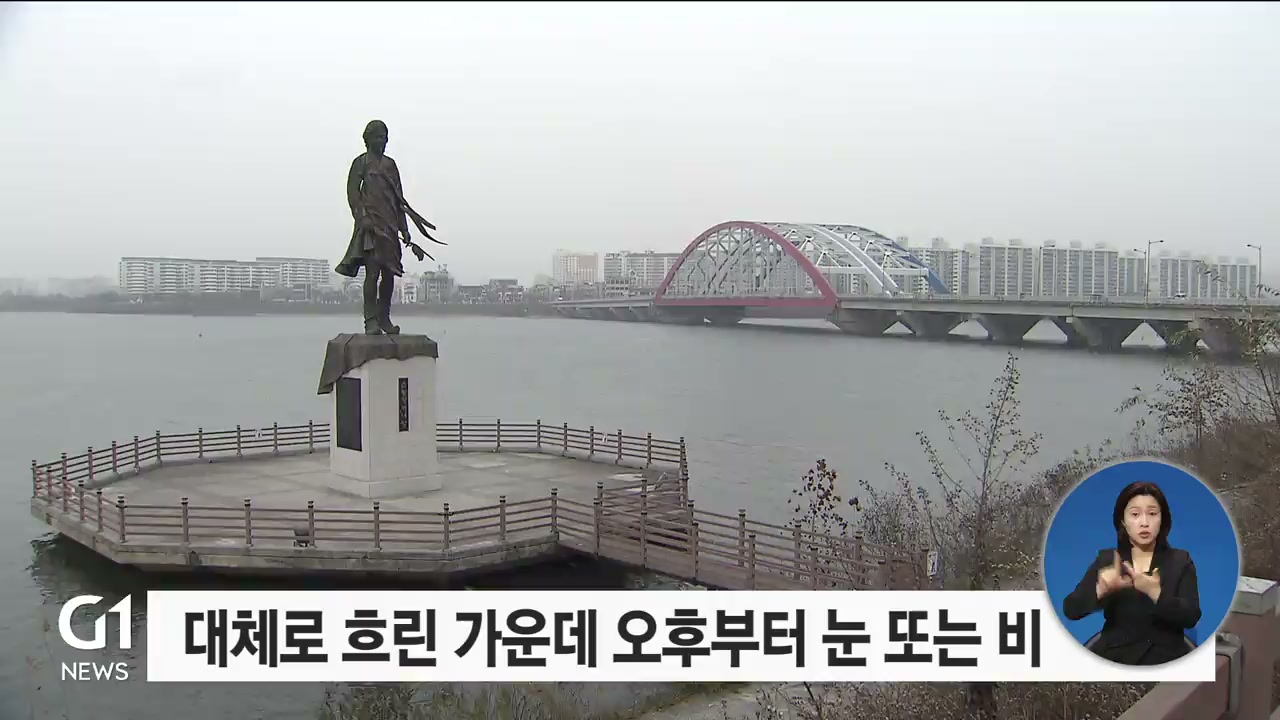 오늘 강원자치도는 대체로 흐린 가운데 늦은 오후부터 비나 눈이 내리겠습니다.