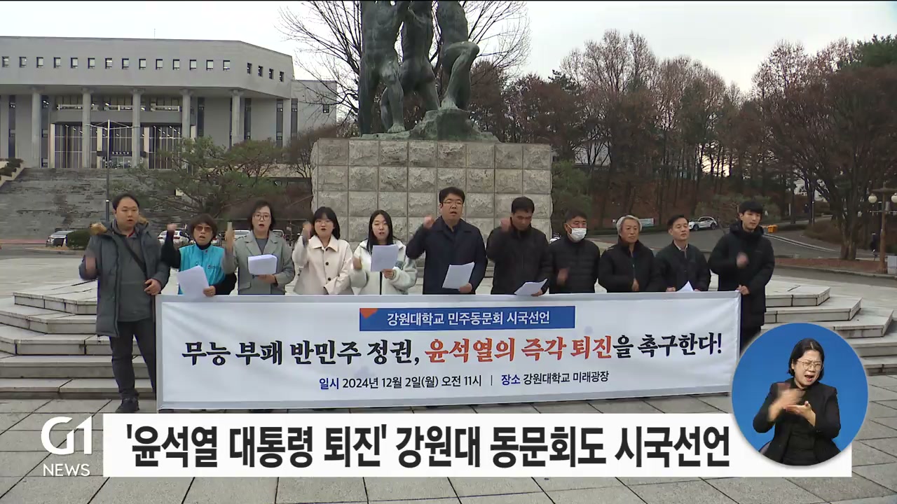 강원대 민주동문회는 시국선언문을 내고, "윤석열 정권은 명백히 실패했다"며 "국민 앞에 사죄하고 즉각 퇴진하라"고 밝혔습니다.