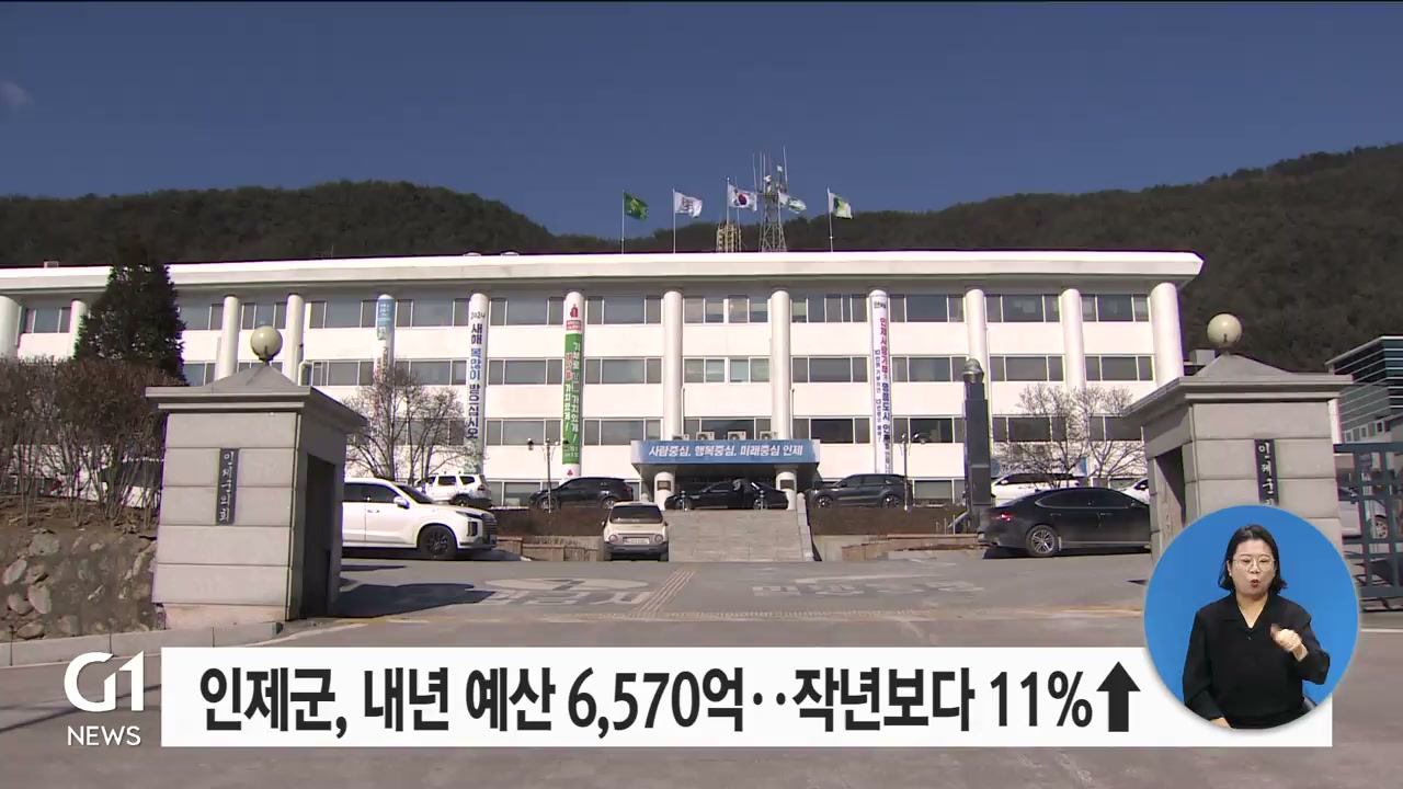 인제군은 내년 예산이 지난해보다 11%, 665억 원 증가한 6천 570억 원으로 확정됐다고 밝혔습니다.