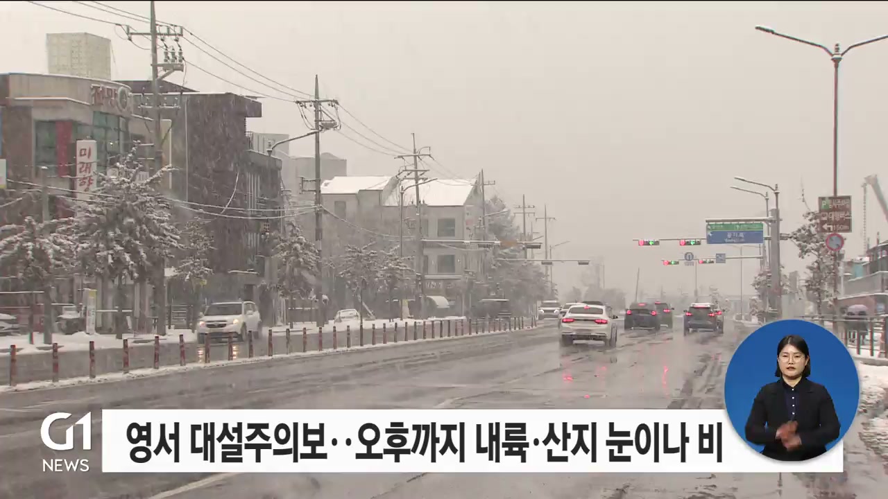 영서지역에 대설주의보가 내려진 가운데 오늘 내륙과 산지를 중심으로 오후까지 눈이나 비가 내리는 곳이 있겠습니다.