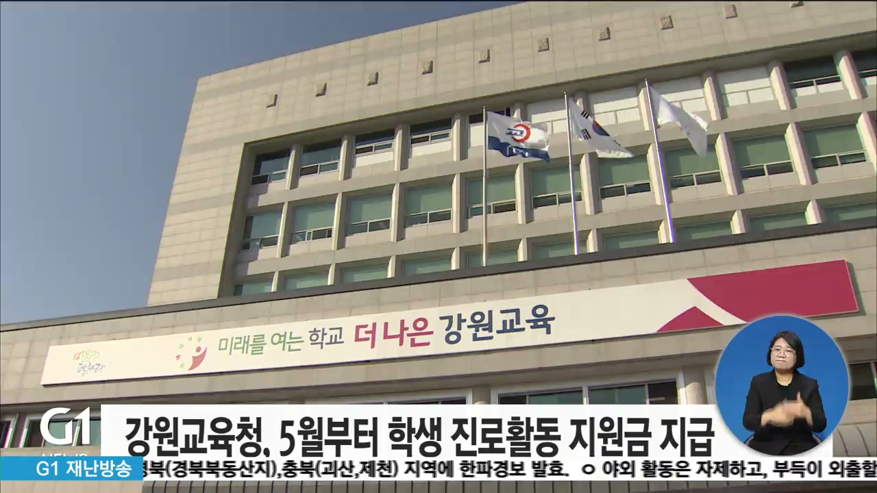 강원자치도교육청이 오는 5월부터 강원 지역 내 고등학교 1학년 재학 중인 학생들에게 진로활동지원금을 지급합니다.
