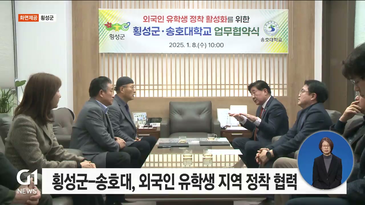 횡성군과 송호대는 어제(8일) 군수 집무실에서 '외국인 유학생의 지역 내 정착 활성화를 위한 업무 협약'을 체결했습니다.
