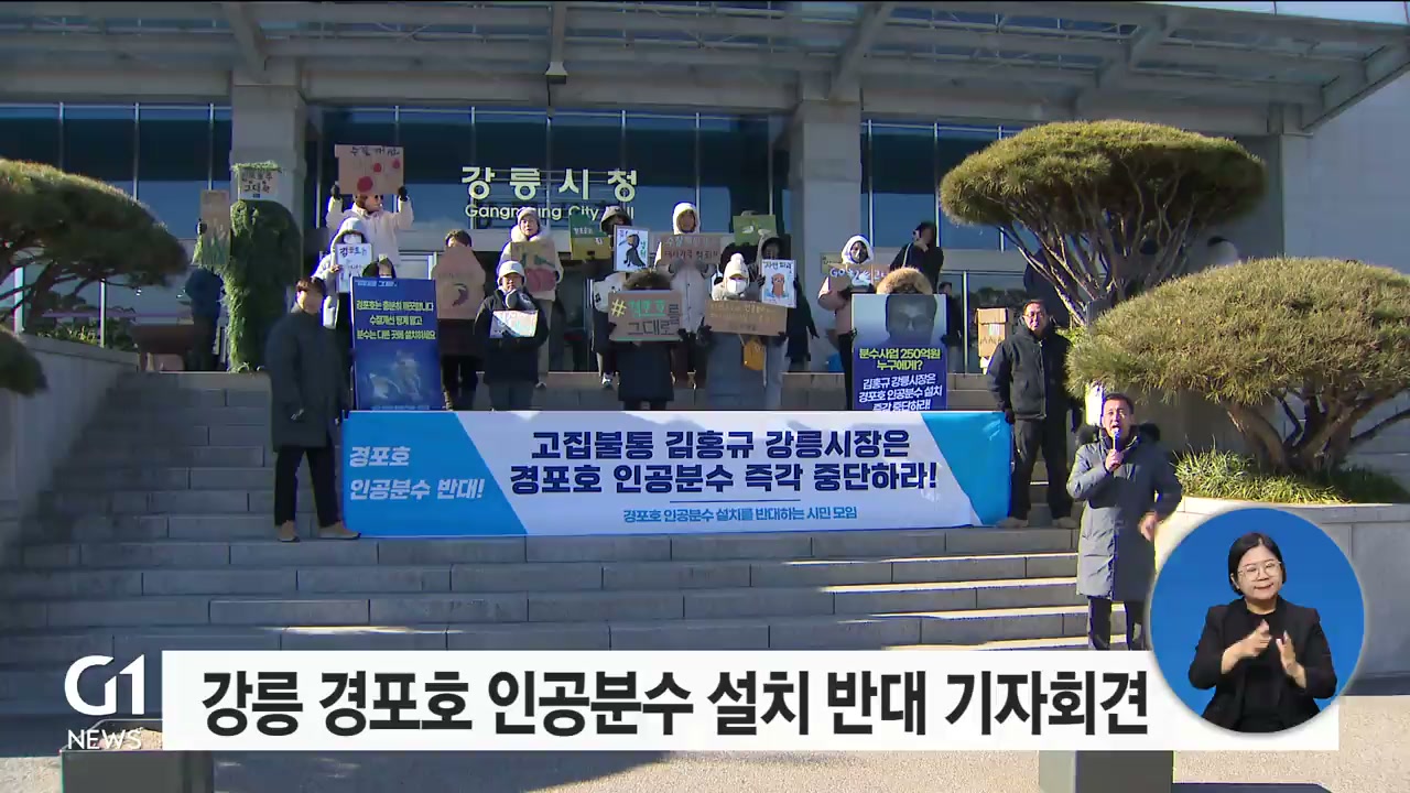 '강릉 경포호 인공분수 설치를 반대하는 시민 모임'이 기자회견을 열고, 강릉시의 사업 중단을 촉구하고 나섰습니다.