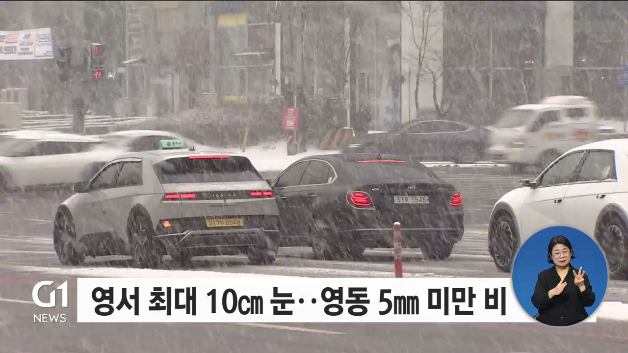 영서 최대 10㎝ 눈..영동 5㎜ 미만 비