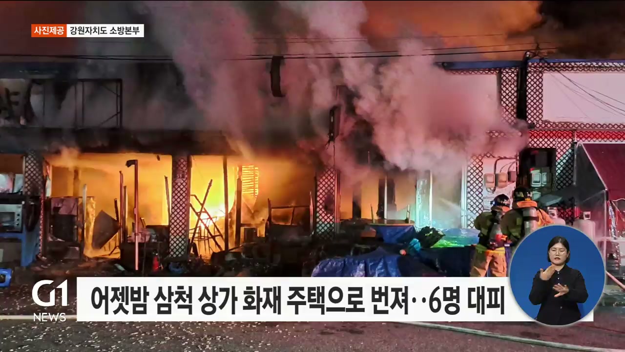 어젯밤 삼척 상가 화재 주택으로 번져..6명 대피