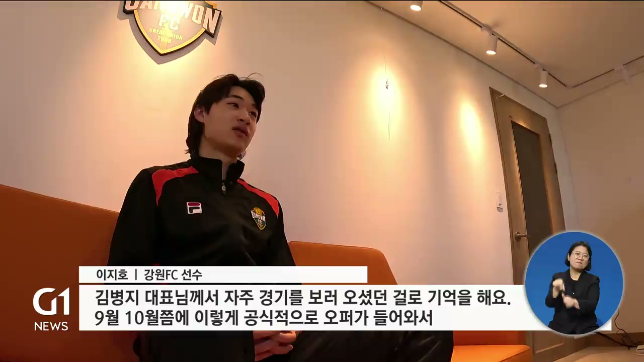 "김병지 대표님께서 자주 경기를 보러 오셨던 걸로 기억을 해요. 9월 10월쯤에 이렇게 공식적으로 오퍼가 들어와서 두 번 생각할 거 없이 그냥 바로 강원FC를 선택을 했던 것 같아요."