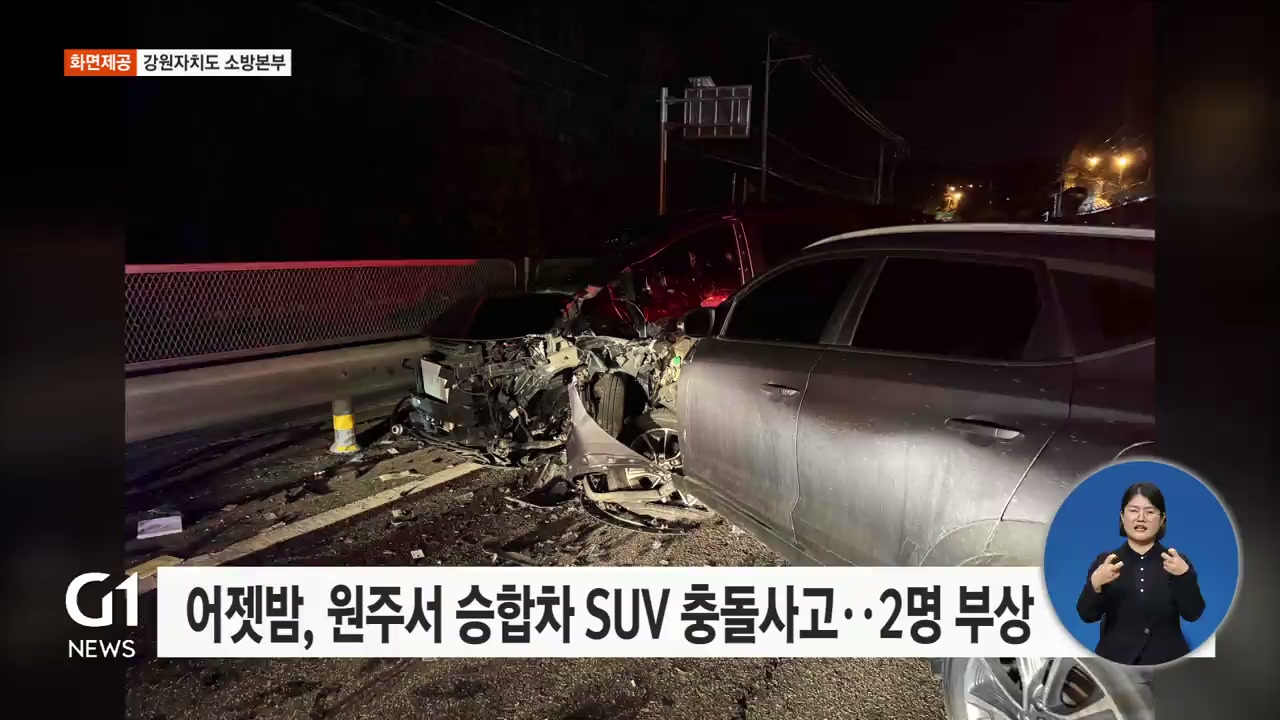 어젯(3일)밤 8시 21분쯤 원주시 소초면 8전투비행단 인근 한 도로에서 승합차와 SUV가 충돌하는 사고가 났습니다.