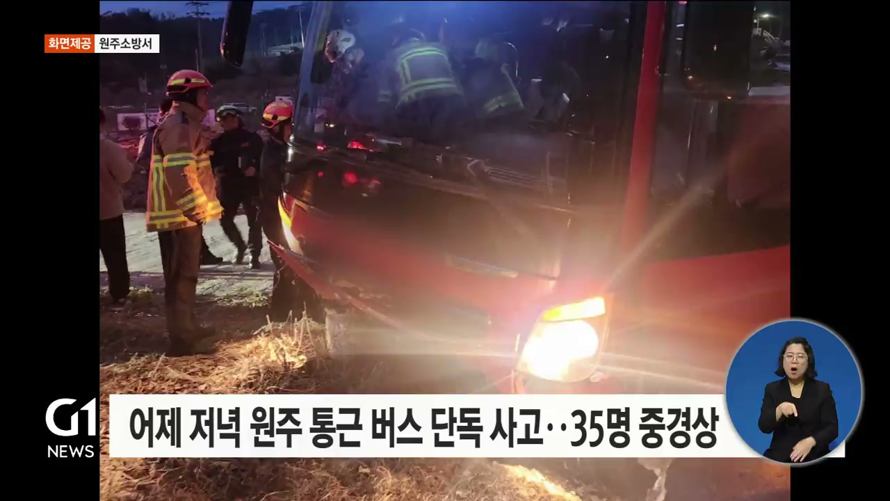 이 사고로 버스에 타고 있던 35명이 중경상을 입었습니다.