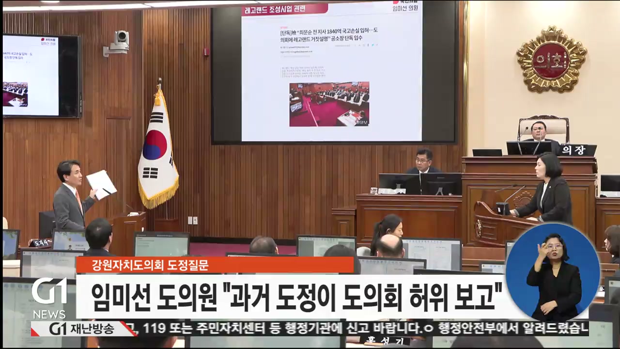 임미선 도의원이 업무상배임 등의 혐의로 불구속 기소된 최문순 전 지사의 허위 보고 내용을 지적하며 포문을 열었습니다.