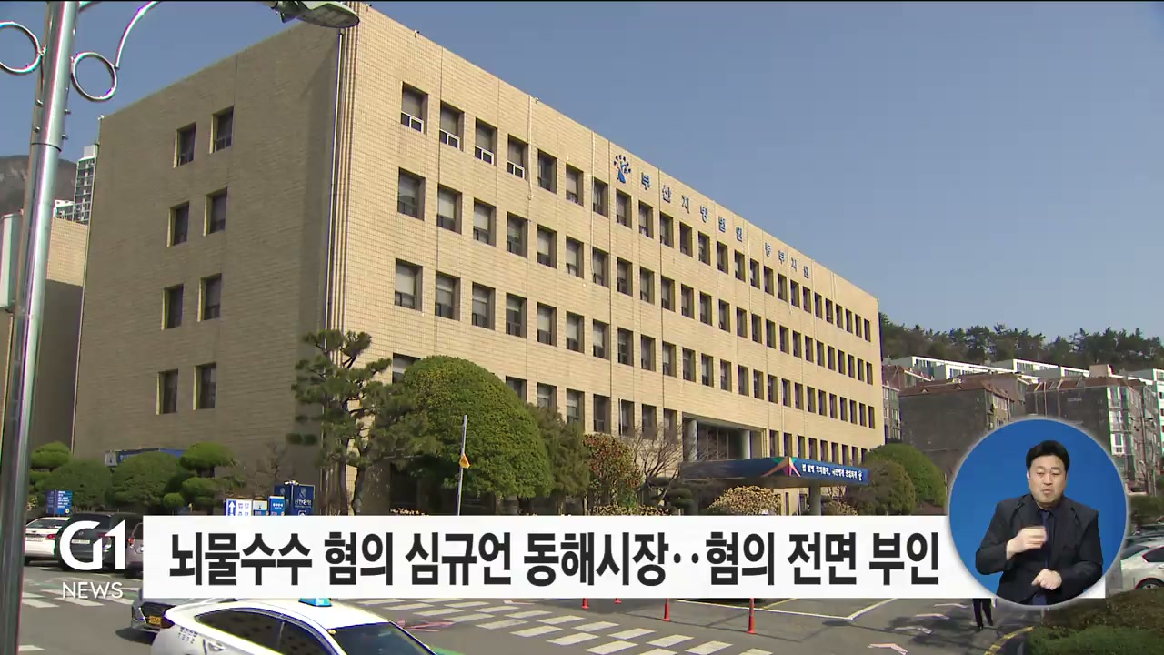 뇌물수수 혐의로 구속기소된 심규언 동해시장의 첫 공판이 어제(27일) 부산지방법원 동부지원에서 열린 가운데, 심 시장은 혐의를 전면 부인했습니다.