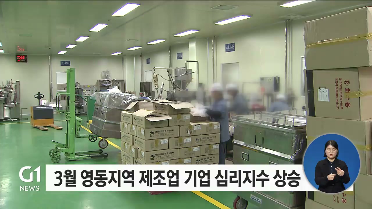 이번달(3월) 영동지역 제조업 기업 심리지수가 한 달 전보다 소폭 상승한 것으로 조사됐습니다.