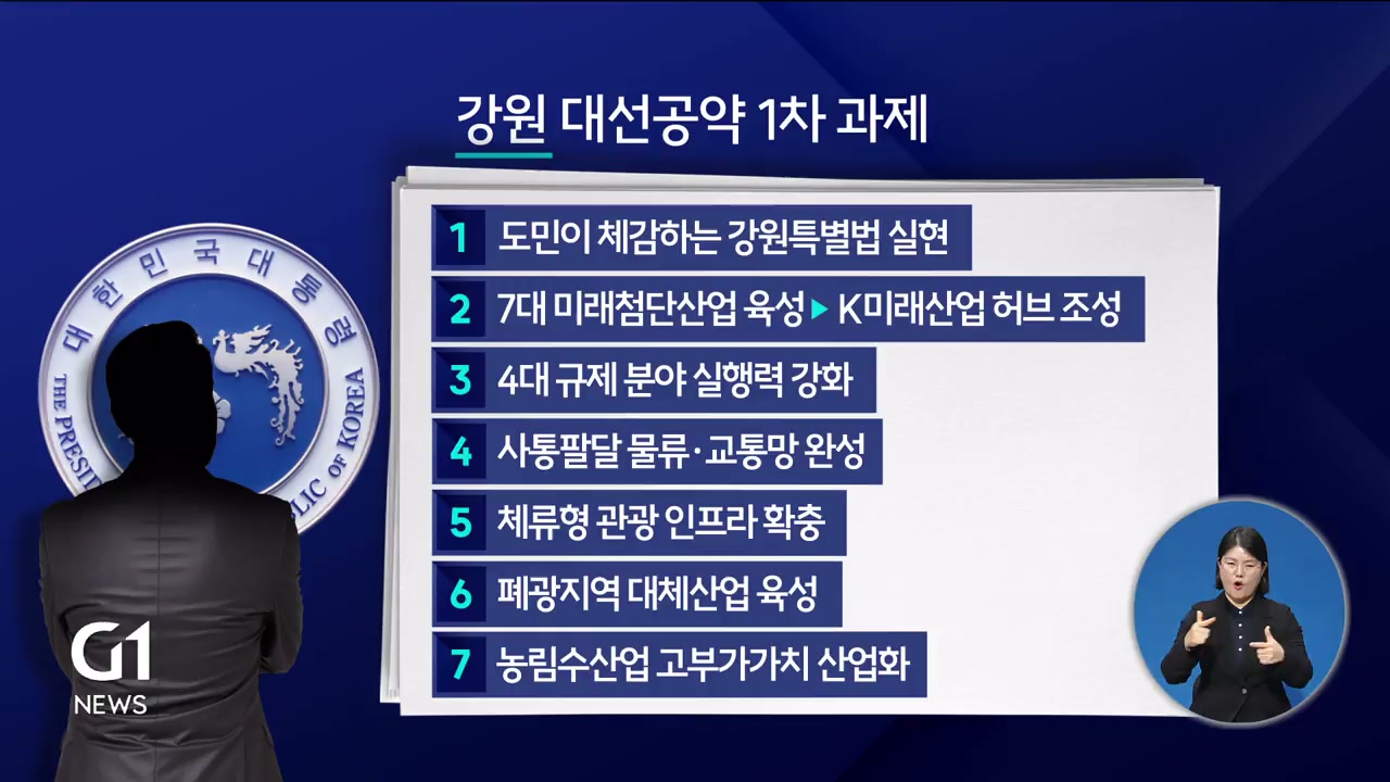 /1차 공약에는 강원특별법 3차 개정을 비롯한 7대 미래 산업 육성과 4대 규제 완화,