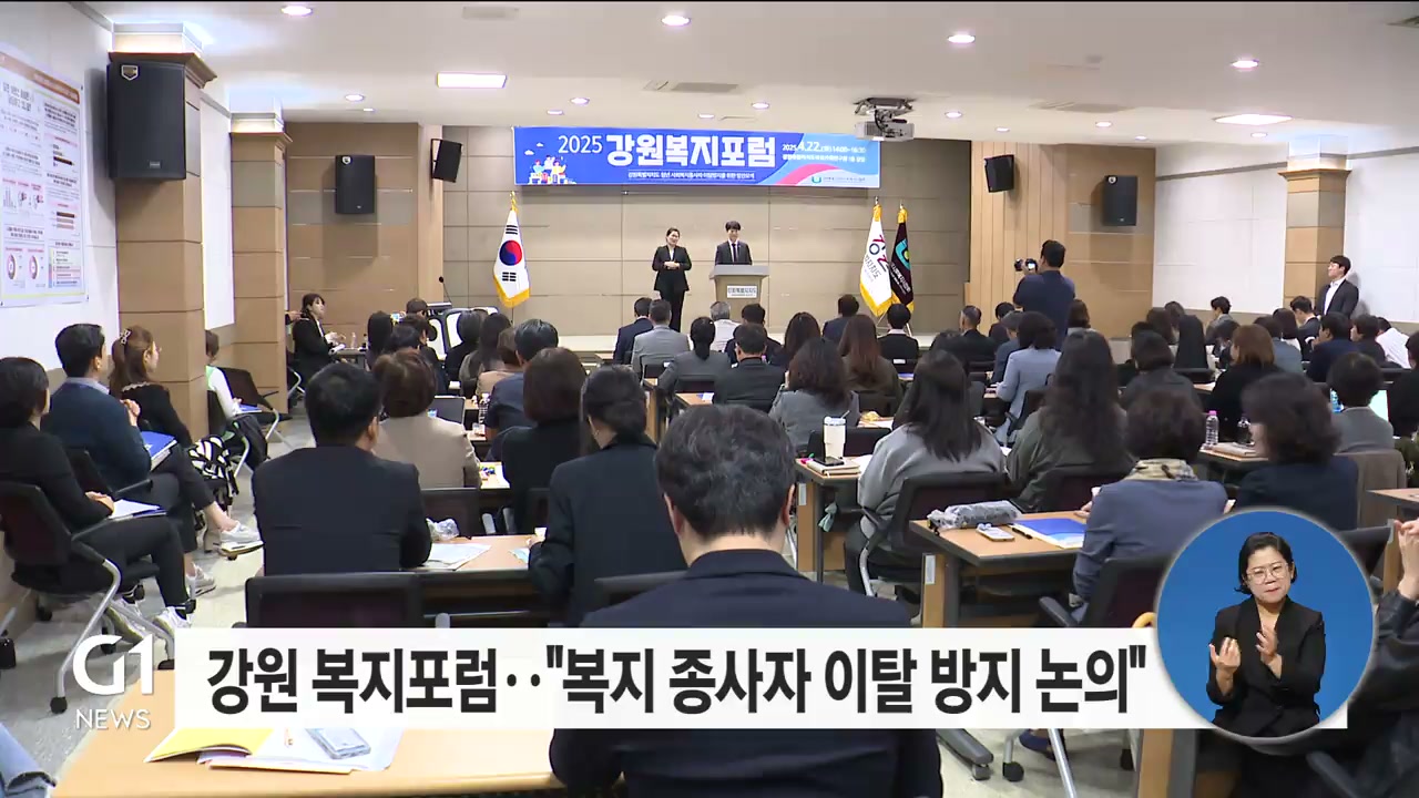 강원자치도사회복지사협회는 어제(22일) 강원자치도여성가족연구원 강당에서, '도내 청년 사회복지 종사자 이탈 방지를 위한 방안 모색'을 주제로 2025 강원 복지포럼을 개최했습니다.