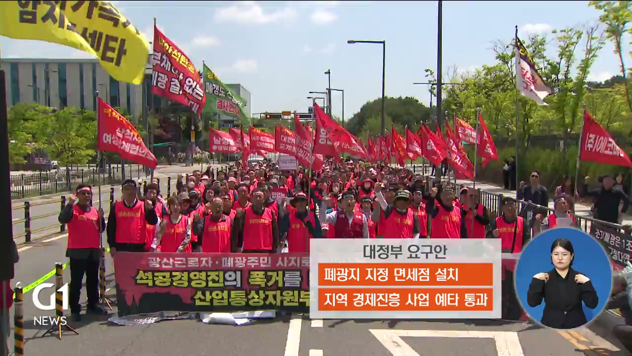 폐광반대 공동투쟁위원회는 기획재정부를 상대로 폐광 지역 지정 면세점 설치와 조기 폐광 지역 경제 진흥 사업의 예비 타당성 조사 통과를 촉구하고 있습니다.