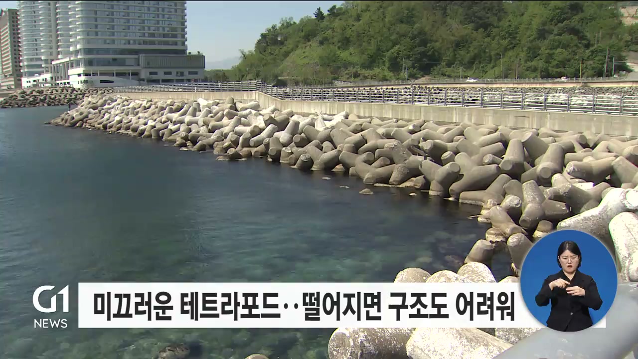파도를 막기 위해 바다에 설치된 방파제 구조물인 테트라포드 추락 사고가 끊이질 않고 있습니다.