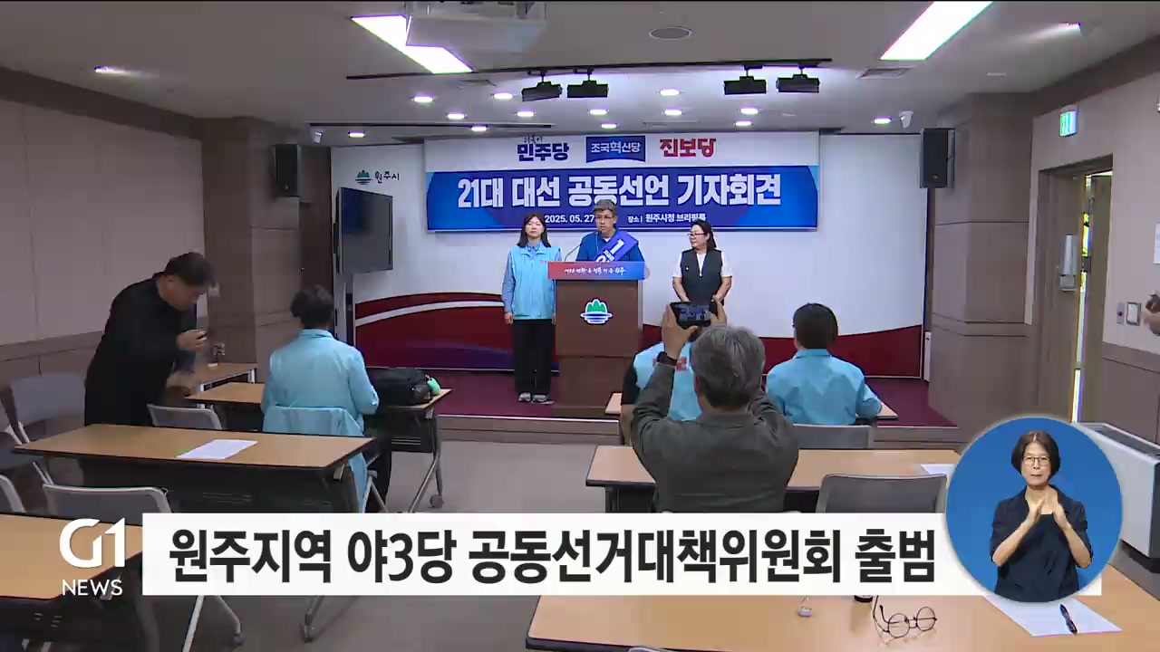 제21대 대통령 선거를 앞두고 더불어민주당과 조국혁신당, 진보당이 원주지역 공동선거대책위원회를 구성하고, 민주·진보 진영의 승리를 위해 힘을 모으기로 했습니다.