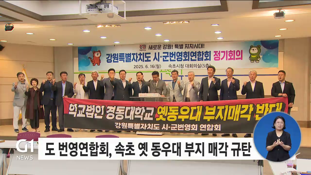 연합회는 어제(16일) 속초시청에서 정기 회의를 열고 “옛 동우대 부지는 형성 과정을 고려하면 시민 공공 자산”이라면서 시세 차익만을 보고 일방적으로 매각할 게 아니라 부지를 지역에 환원해야 한다고 주장했습니다.