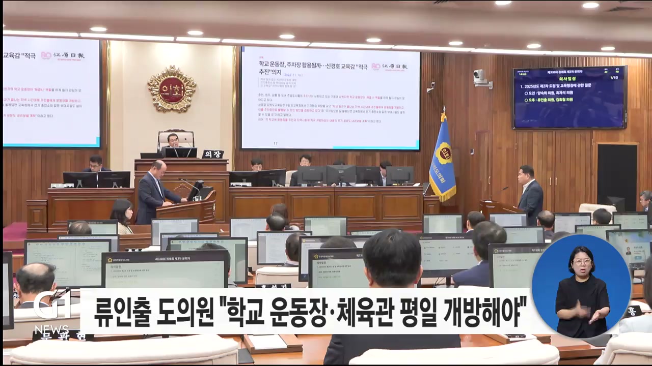 류인출 도의원은 어제(18일) 열린 도의회 도정질문에서 "휴일이 아닌 번화가 주차난이 심각한 시간대인 평일 퇴근 시간 직후 주민에게 학교 운동장과 주차장이 개방돼야 한다"고 말했습니다.