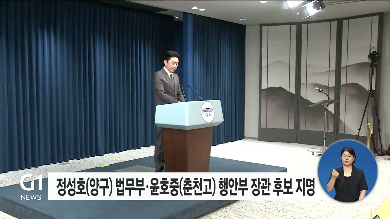 양구 출신의 더불어민주당 정성호 국회의원이 법무부 장관 후보자로, 춘천고 출신 윤호중 의원이 행정안전부 장관 후보자로 지명됐습니다.