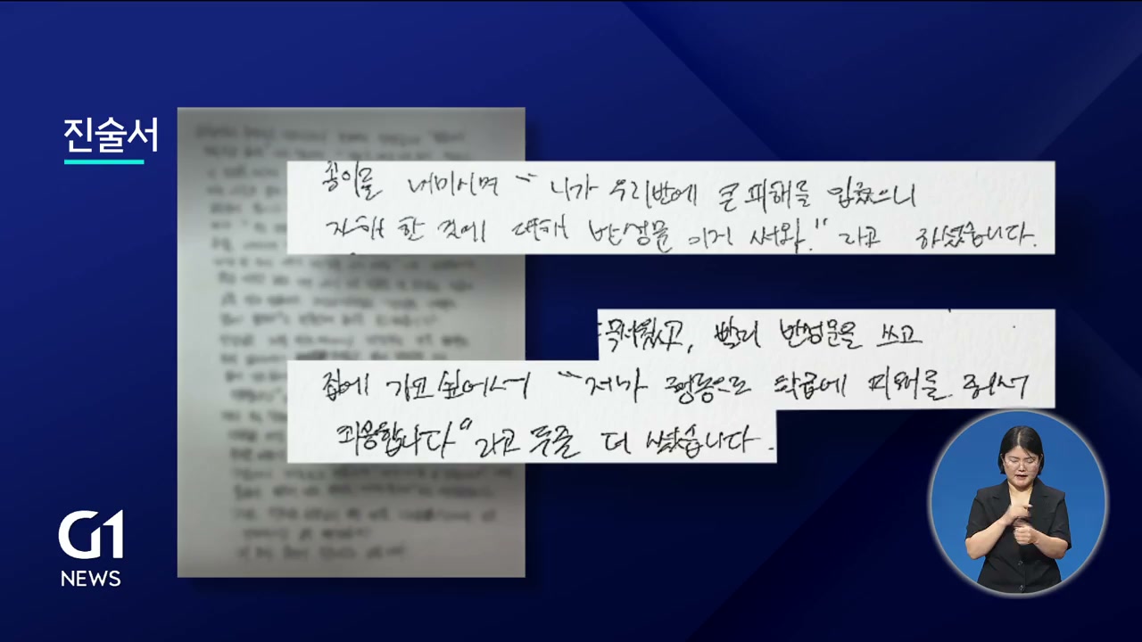 '제 행동으로 학급에 피해를 줘서 죄송합니다'라고 썼다"고 적었습니다./