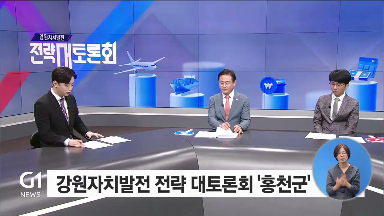 G1방송과 강원도민일보, 강원일보가 공동 주관하는 토론회에는 신영재 홍천군수와 장진영 강원연구원 연구위원이 출연해 '경제 으뜸도시 홍천'의 발전 전략을 모색했습니다.