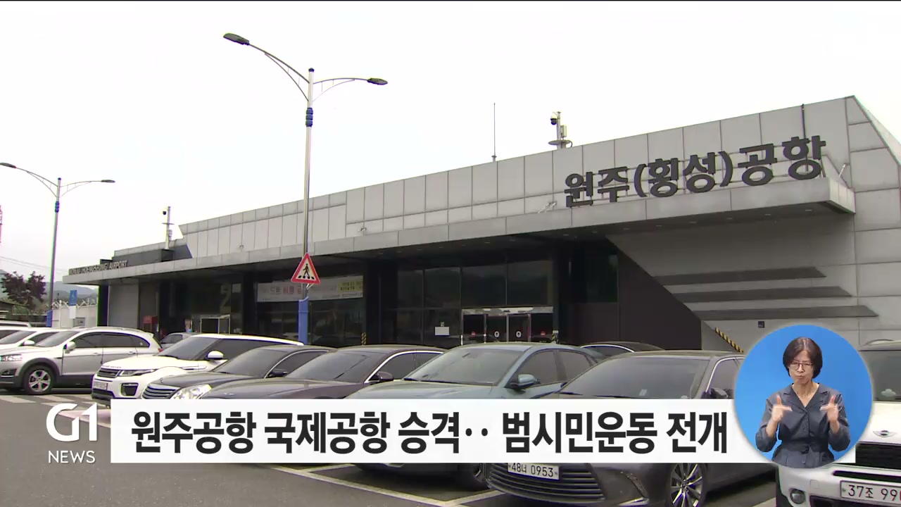원주시가 원주공항 국제공항 승격을 위해 여객 청사를 신축 이전하고 기반 시설을 확충하는 등 역량을 집중한다고 밝혔습니다.