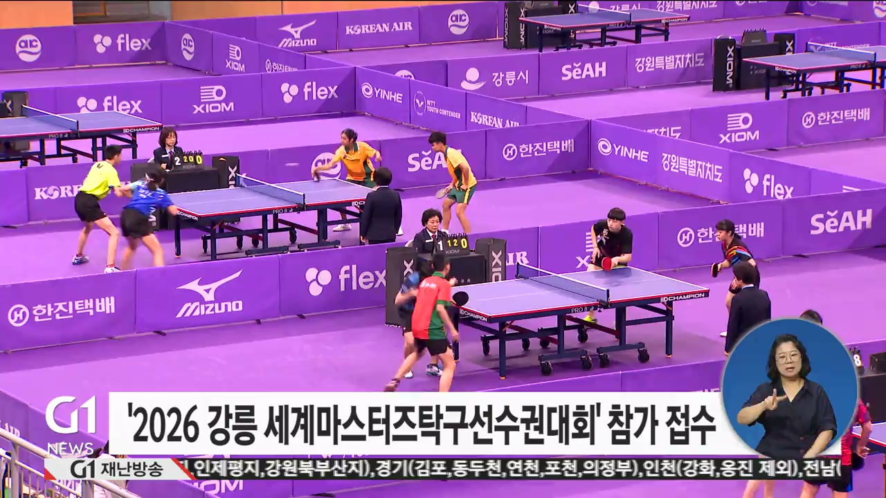 강릉시가 내년 6월 개최 예정인 '2026 강릉세계마스터즈탁구선수권대회'를 앞두고 대회 참가 신청 접수합니다.