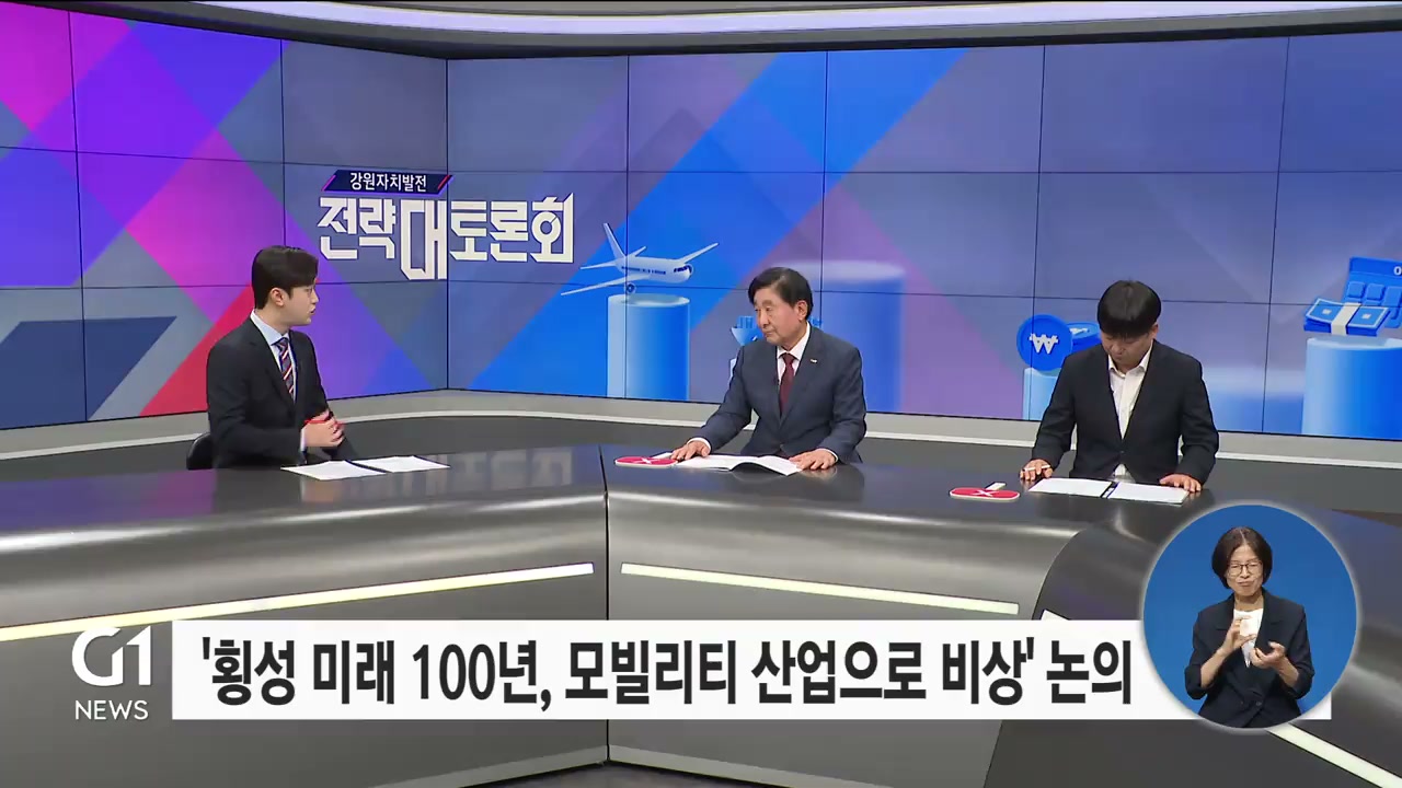 G1방송과 강원도민일보, 강원일보가 공동 주관하는 토론회에서는 김명기 횡성군수와 강원연구원 조근식 연구위원이 전문가 패널로 출연해 '횡성 미래 100년, 모빌리티 산업으로 비상'을 주제로 발전 전략을 모색했습니다.