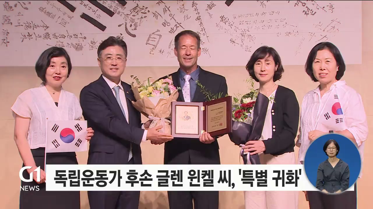 올해 삼일절 G1뉴스 단독 보도를 통해 글렌 윈켈씨가 비자 신청 과정에서 신을노 선생의 후손임이 알려지자, 법무부는 당초 3년 단위로 갱신해야 하는 F-4 비자 대신 특별 귀화를 허가했습니다.