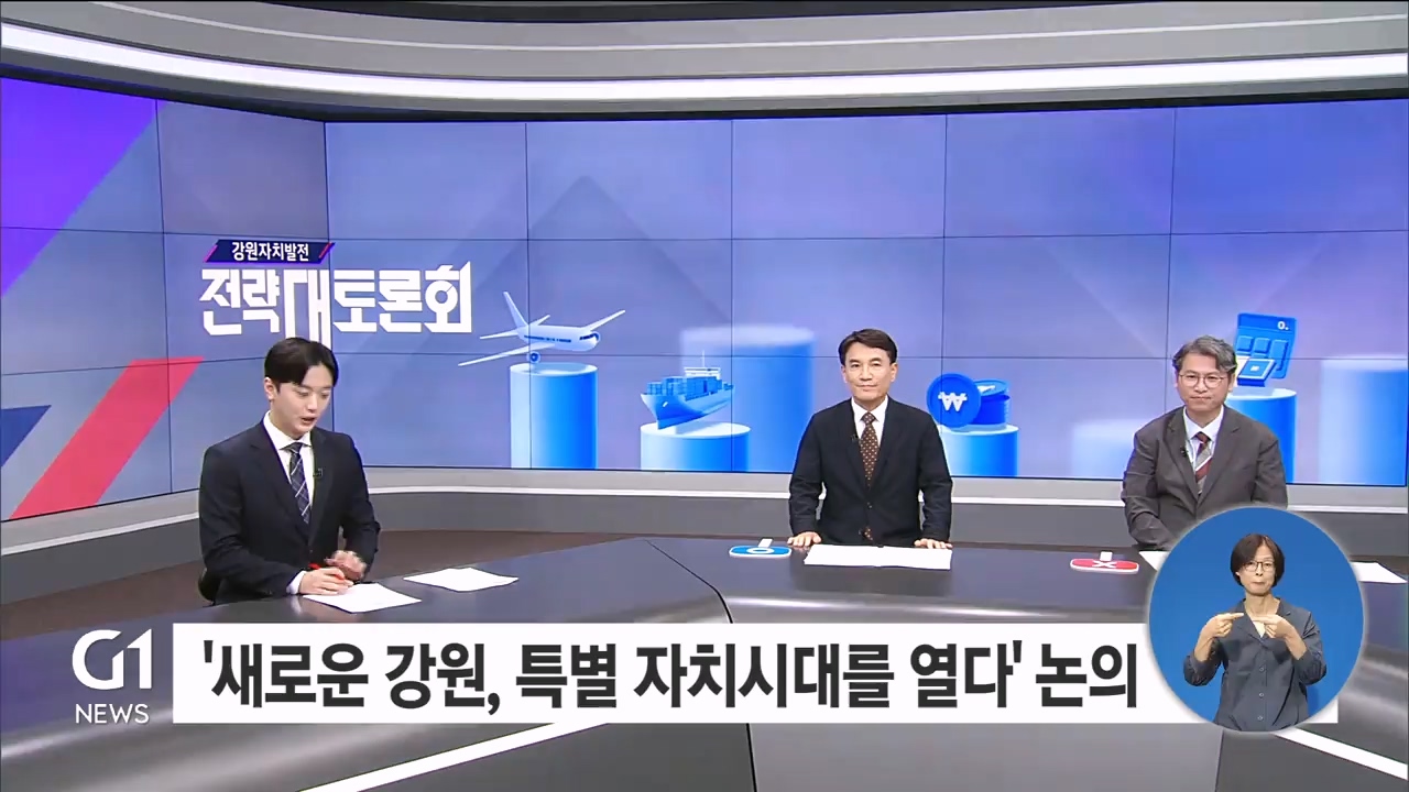 G1방송과 강원도민일보, 강원일보가 공동 주관하는 토론회에는 김진태 강원자치도지사와 김재진 강원연구원 기획조정실장이 전문가 패널로 출연해 '새로운 강원, 특별 자치시대를 열다'를 주제로 다뤘습니다.