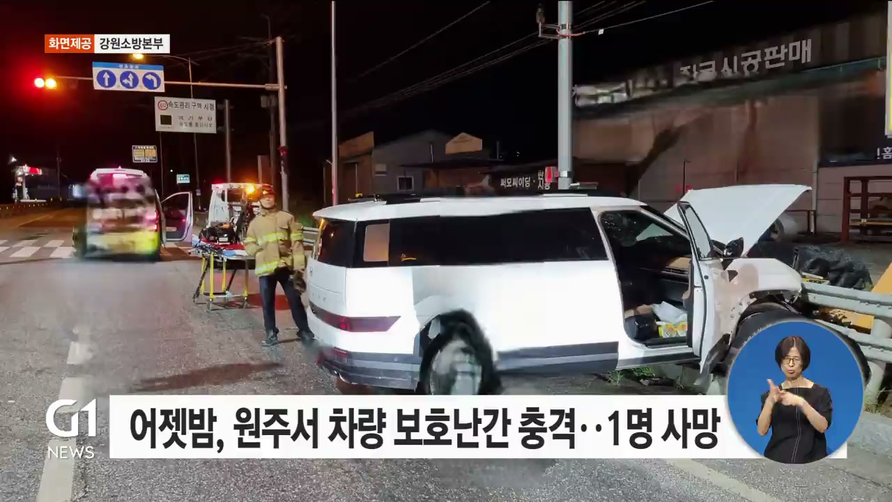 어젯밤, 원주서 차량 보호난간 충격..1명 사망