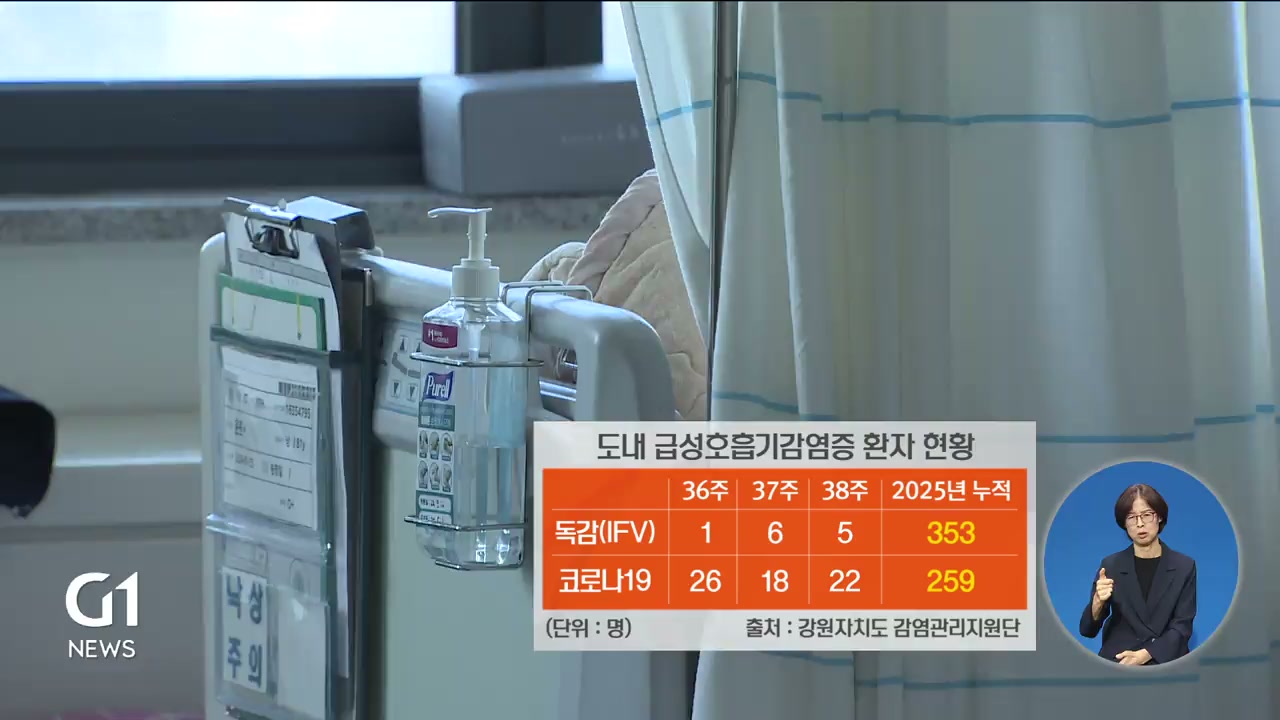 지난주 기준 올들어 도내 누적 독감 입원 환자는 350여 명, 코로나19 입원 환자는 250여 명으로,
