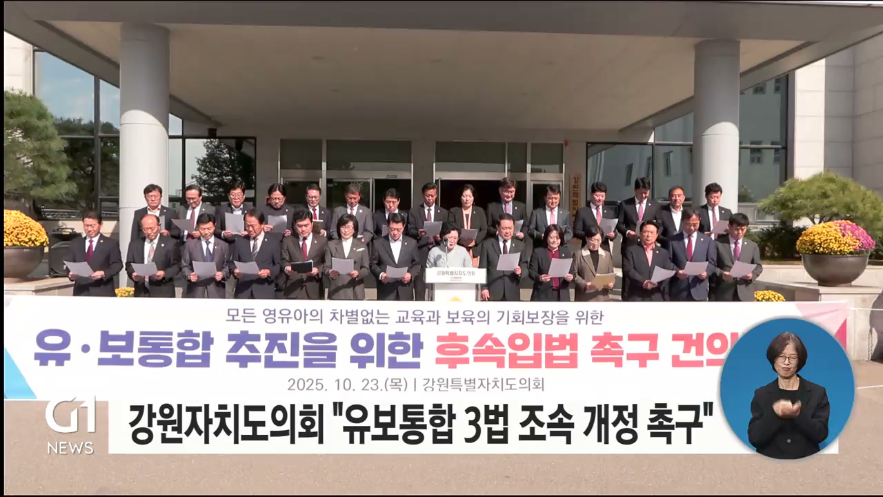 강원자치도의회가 어제(23일) '유보통합 추진을 위한 후속 입법 촉구 건의문'을 채택했습니다.
