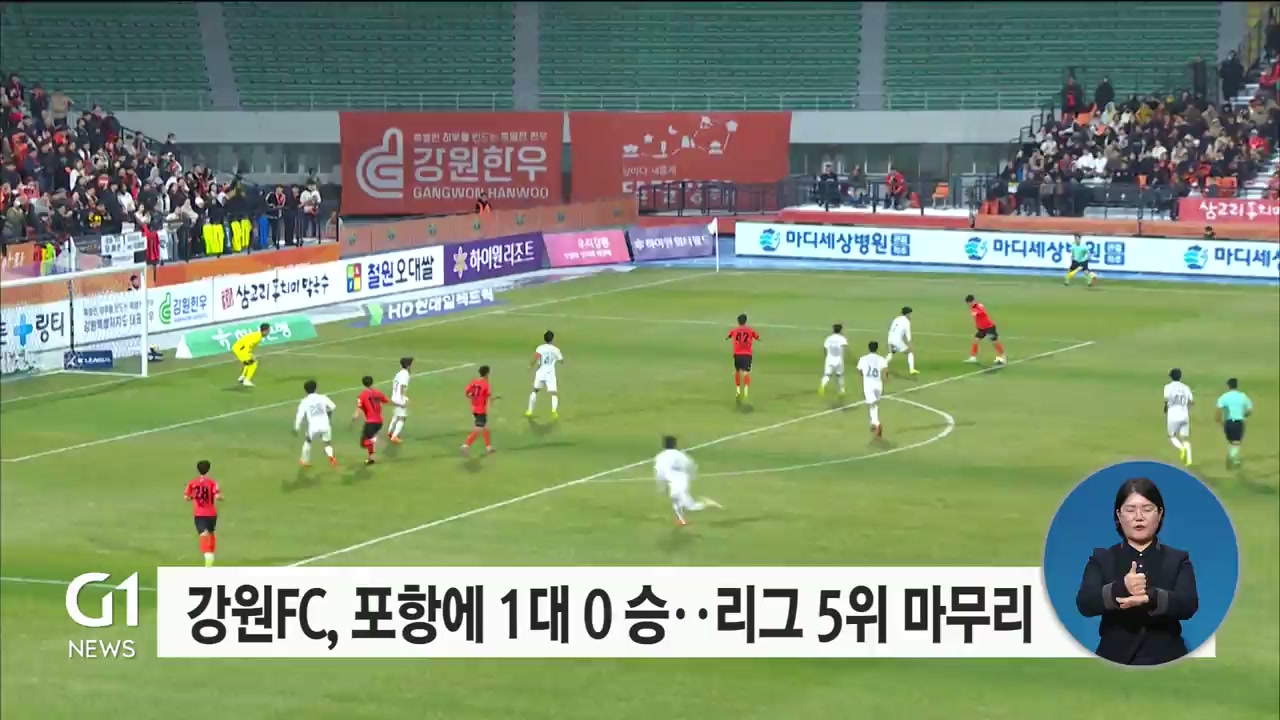 강원FC는 어제(30일) 강릉하이원아레나에서 열린 하나은행 K리그1 2025 최종라운드 홈 경기에서 포항 스틸러스에 1대 0으로 이겼습니다.