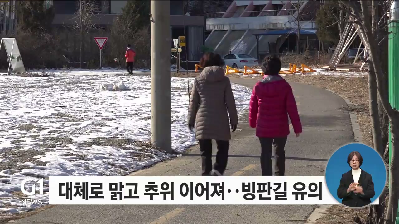 강원지방기상청은 빙판길과 도로 살얼음 등에 따른 교통 안전과 보행자 낙상 사고에 유의할 것을 당부했습니다.