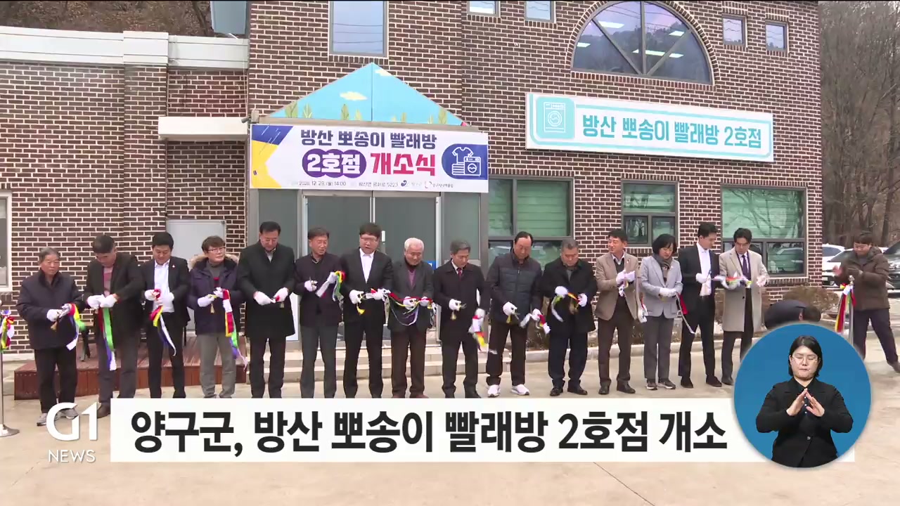 양구군이 취약 계층 세탁 환경 개선을 위해 방산면에 뽀송이 빨래방 2호점을 개소했습니다.