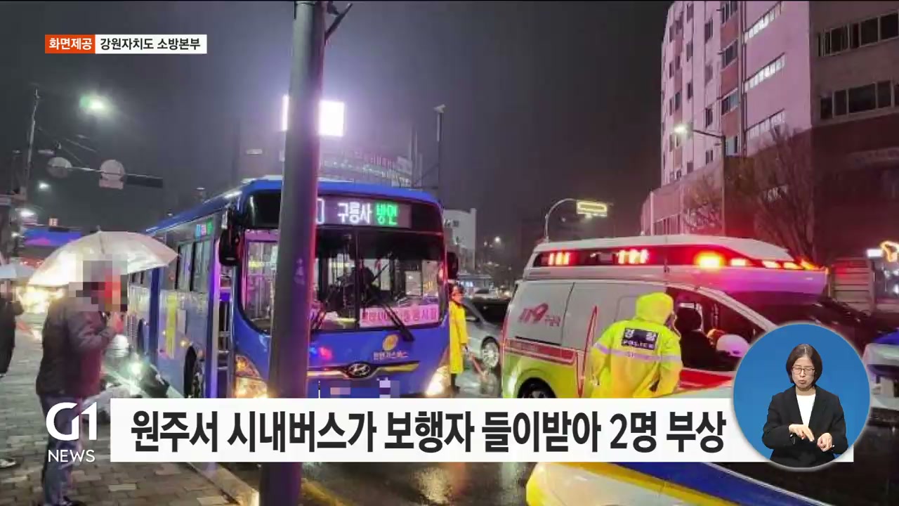 원주서 시내버스가 보행자 들이받아 2명 부상