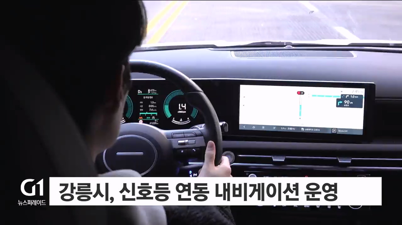 강릉지역 교차로 신호 대기 시 내비게이션에 잔여 시간이 표시되는 시스템이 대표적인데요.