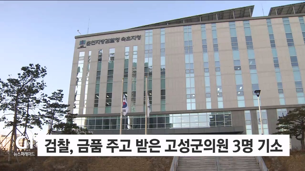 춘천지검 속초지청은 고성군의원 A씨를 뇌물공여와 증거인멸교사 혐의로,