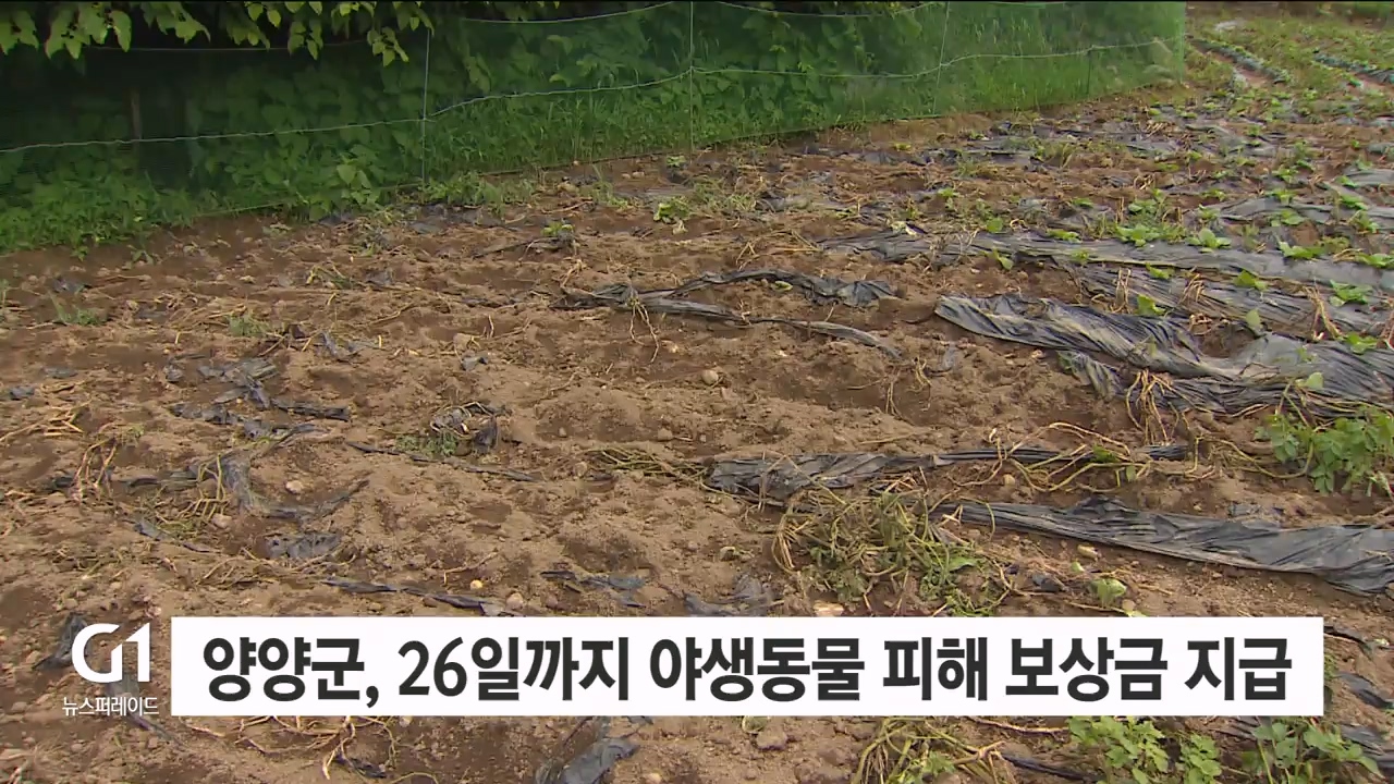 양양군이 야생동물로부터 농작물 피해를 입은 농가에 보상금을 지급합니다.