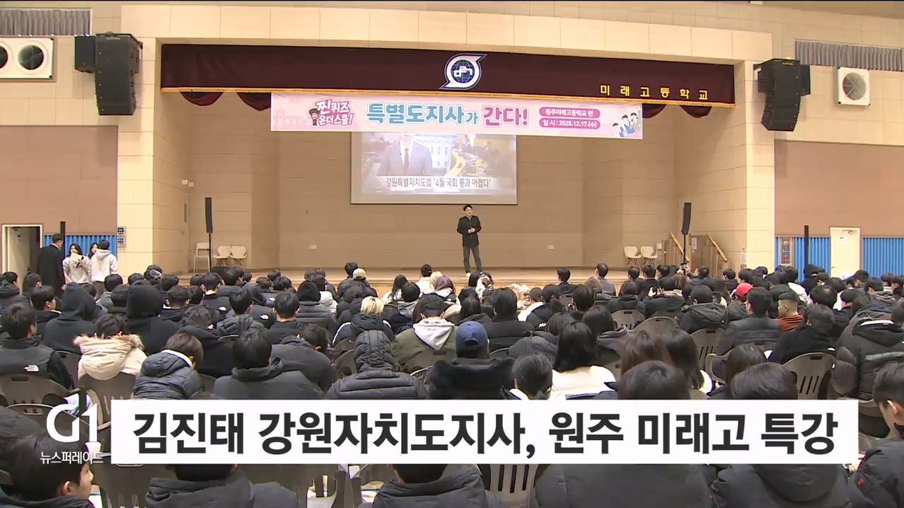 김진태 강원자치도지사는 오늘(17일) 원주 미래고를 방문해 학생들을 대상으로 '특별도지사가 간다' 특강을 진행했습니다.