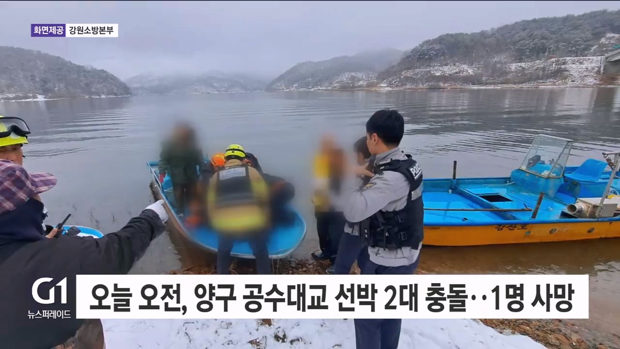 오늘 오전 양구 공수대교서 선박 2대 충돌..1명 숨져