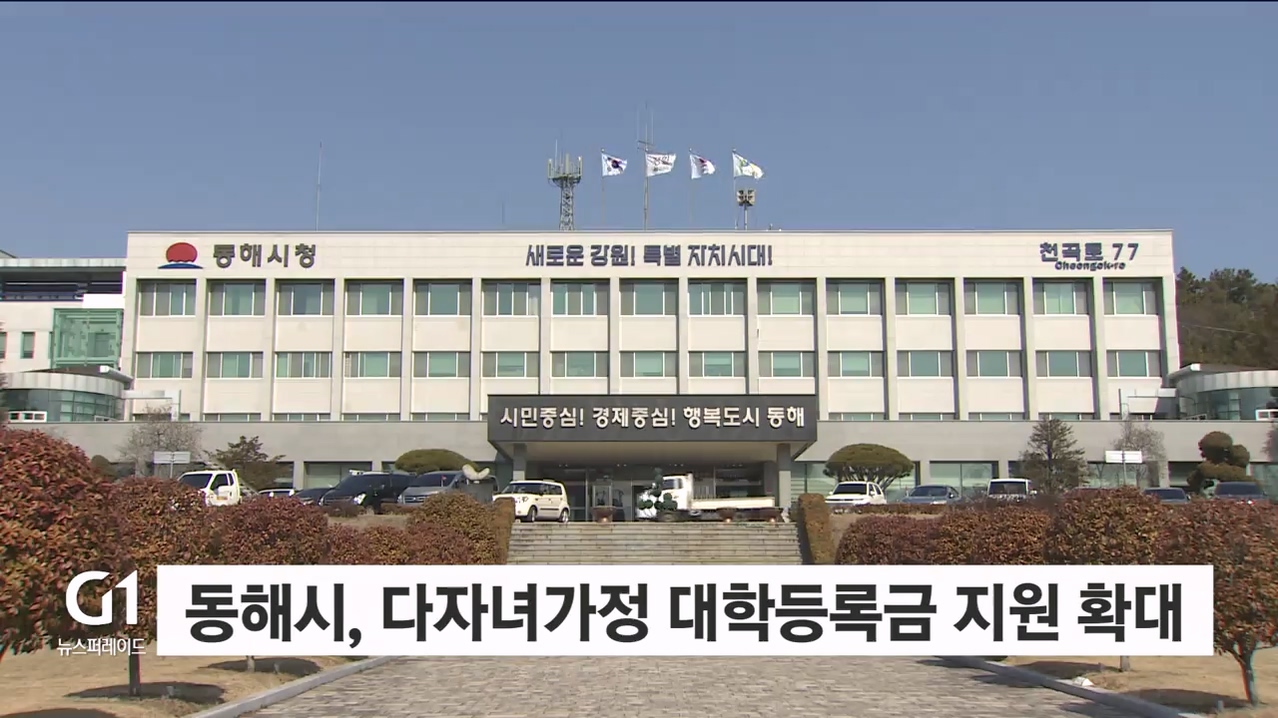 동해시가 다자녀가정의 대학등록금 지원을 기존 세자녀 이상에서 두자녀 이상으로 확대합니다.