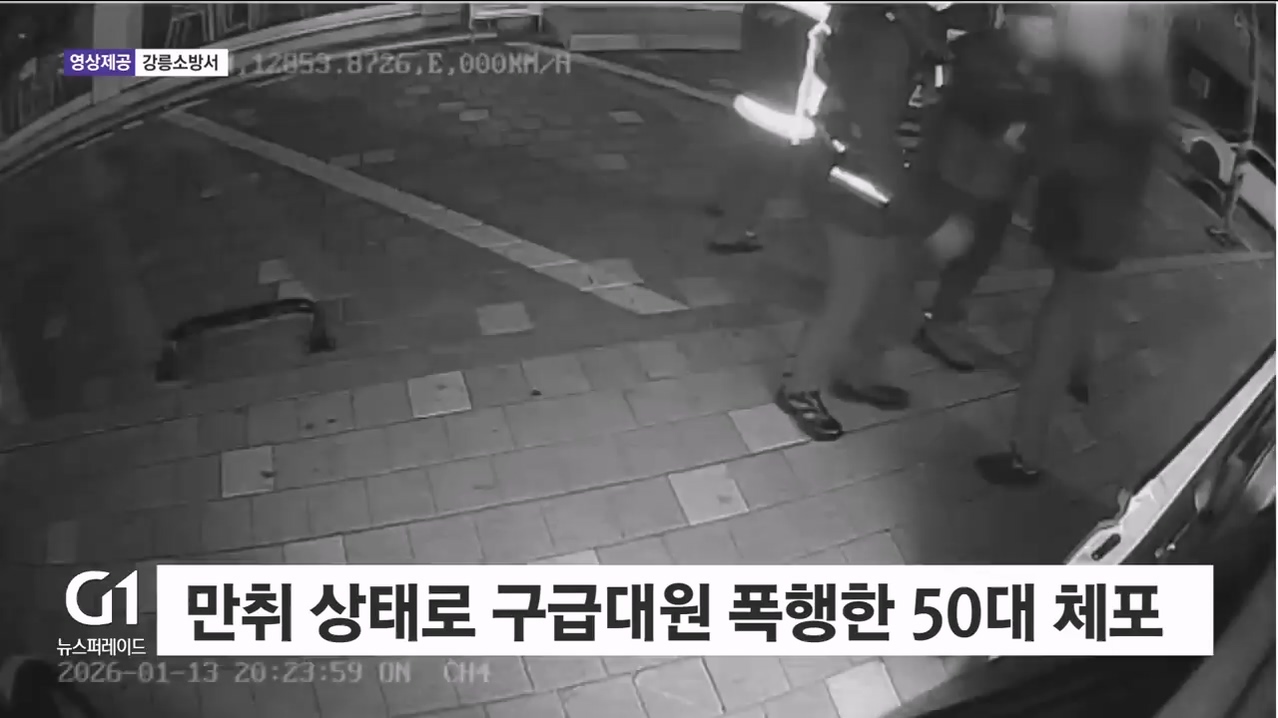 A씨는 어제(13일) 오후 8시 24분쯤 강릉시 옥천동의 한 거리에서 출동한 구급 대원의 멱살을 잡고 주먹을 휘두른 혐의를 받고 있습니다.