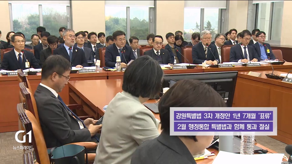 급물살을 탄 행정 통합 특별법과 달리 강원특별법 3차 개정안은 1년 7월째 멈춰 있습니다.