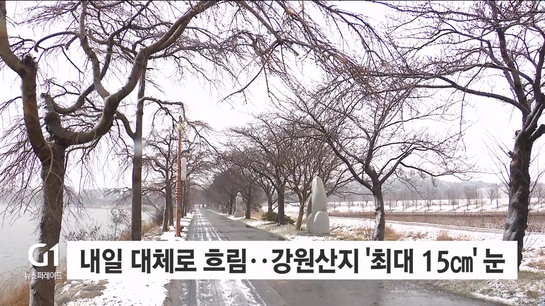내일 대체로 흐림..강원산지 '최대 15cm' 눈